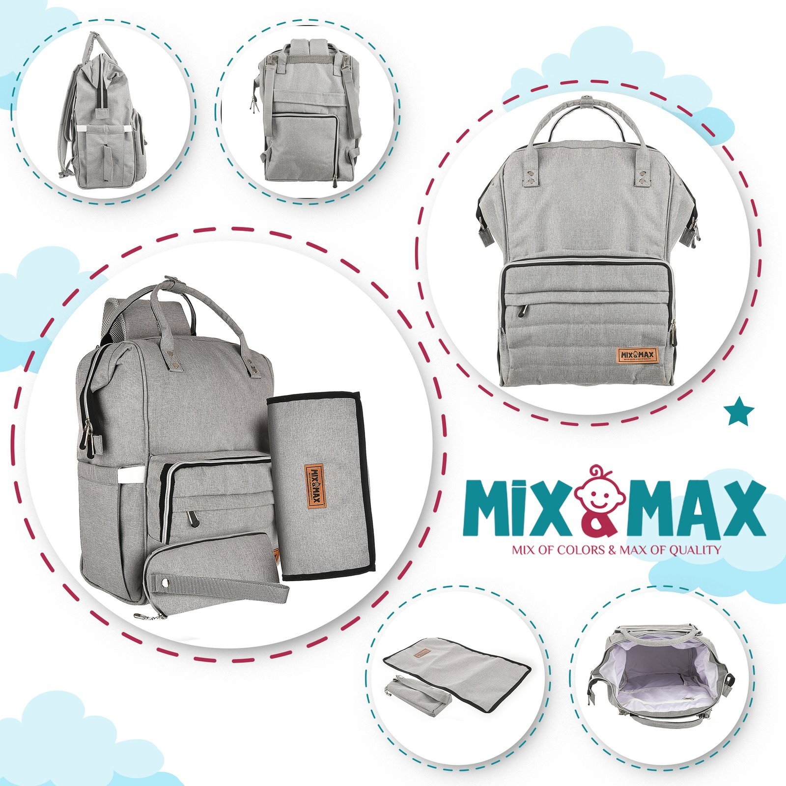 Perfect for daily use, travel, retail stores, wholesale distribution, white label branding, and international export, Mix and Max Baby ensures top-quality craftsmanship and functional design. Each diaper backpack can be purchased as a single bag or as a complete set with a matching changing pad, insulated milk bottle cover, Luggage Starp and Stroller Hanger system– making it the ideal choice for families and gift bundles.