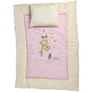 Baby Lehaf Blanket 120×90 cm with Pillow – Soft Cotton Baby Blanket with Padded Edges, Warm Toddler Comforter, Teddy Bear Embroidered Nursery Blanket, Breathable & Hypoallergenic Mix and Max